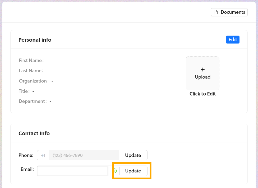 Click update to "Update" to enter a new email.